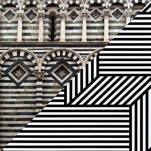 Forme che si ripetono nel mondo dell’arte: all’interno di uno stesso quadrato, piegato a metà ai suoi angoli, un modello di una pubblicità di Dolce & Gabbana incontra la scultura ellenistica del Fauno Barberini, uno scorcio della Villa Malaparte a Capri il simbolo di un famoso brand d’abbigliamento. Davide Trabucco, artista attivo tra Bologna e Ferrara, ha realizzato una serie di collages con forme, che si compenetrano per assonanza di figura ma si respingono per dissonanza di significati, dando vita a dei lavori di incredibile bellezza.