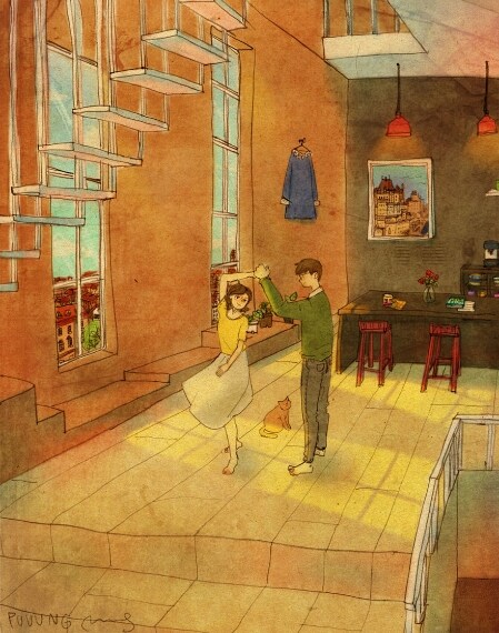 La vita di coppia diventa una storia illustrata nei disegni di Puuung che aggiunge nuove immagini alla sua serie "L'amore è nelle piccole cose" per dimostrare come i sentimenti si vedono nei gesti semplici.