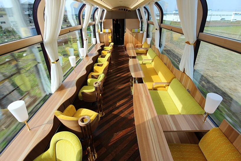 Le carrozze sembrano delle capsule di vetro in movimento sul nuovo treno giapponese da cui godere di una vista mozzafiato del paesaggio circostante.