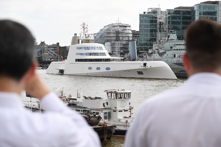 Tutti a bocca aperta nei pressi della Tower Bridge di Londra quando c'è stato il passaggio del gigantesco yacht del magnate russo Andrey Melnichenko, noto come ‘King of Bling’, Re del lusso. Misura 119 metri ed è uno dei 25 superyacht più lunghi al mondo. Progettato da Philippe Starck all'interno presenta mobili in legno, i divani in pelle, i letti rotanti, i vetri antiproiettili.
