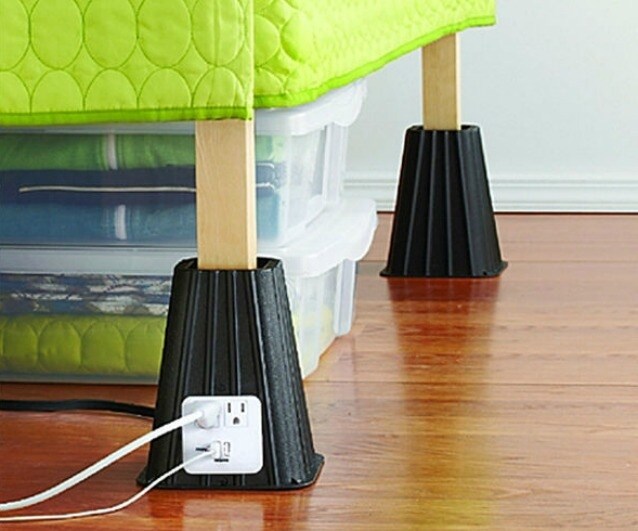 Questi piedi aggiuntivi aumentano l'altezza del proprio letto in modo da usare lo spazio sottostante per lo stoccaggio. Sono dotati anche di ricarica per dispositivi elettronici.