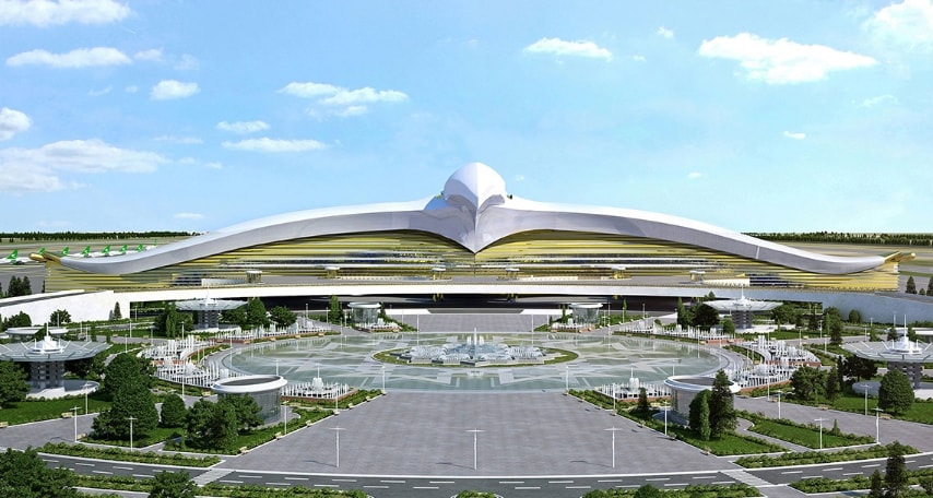 È costato oltre 2 milioni di dollari il nuovo aeroporto di Ashgabat, in Turkmenistan, e potrà accogliere 17 milioni di passeggeri all'anno, anche se la città viene visitata solo da 105 mila turisti l'anno.