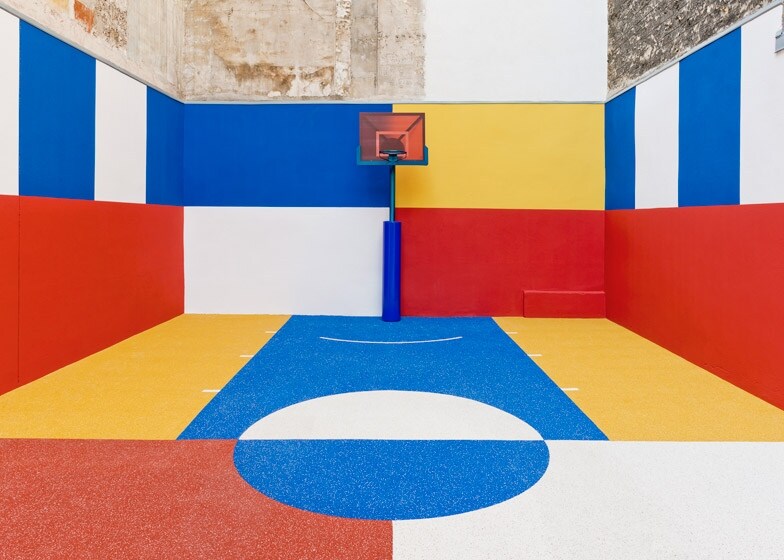 Pigalle Duperré è un campo da basket coloratissimo sorto in un vuoto urbano di Parigi nascosto tra una fila di appartamenti nel centro della città.
