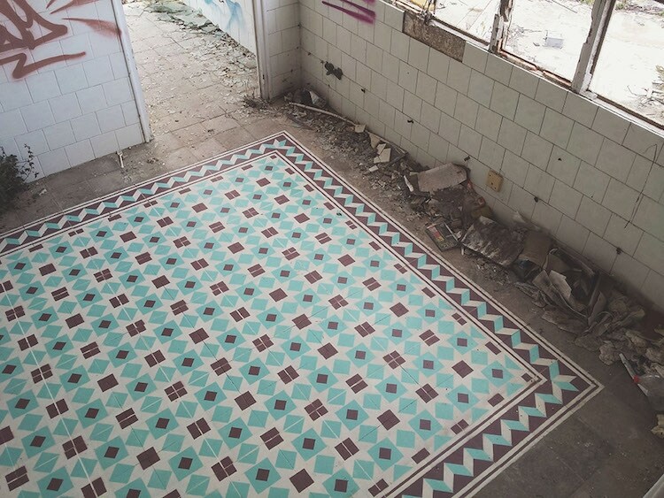 Fatiscenti blocchi di appartamenti a Tenerife, una piazza di edilizia residenziale pubblica a Tarragona, un albergo abbandonato nelle Azzorre-sono le tele perfette per il lavoro di Javier de Riba che trasforma i pavimenti degradati di luoghi abbandonati in capolavori d'arte. I colori vivaci dei pavimenti sono in netto contrasto con l'ambiente circostante e rendono le opere ancora più attraenti.