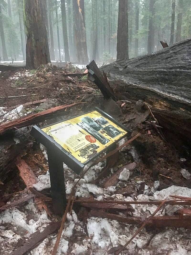 Aveva alla base del tronco un enorme buco, abbastanza grande per farci passare un'automobile, ed era una vera e propria icona in California ma è caduto per il troppo vento: sono tante le immagini che lo ricordano.