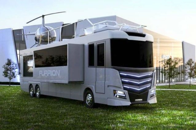 Furrion Elysium è un camper extra-lusso che non teme rivali, costa 3 milioni di dollari, sul tetto c'è persino una jacuzzi e un elicottero, e gli interni sono davvero sbalorditivi.