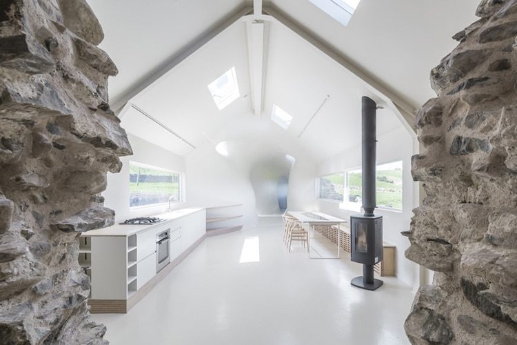 In Europa è sempre più una tendenza diffusa la riconversione di vecchie fattorie in residenze ed altri spazi contemporanei. Gli architetti Nathanael Dorent e Lily Jencks hanno creato Ruins Studio, una residenza moderna nata dalla conversione di una vecchia fabbrica del XVIII secolo che guarda verso la campagna scozzese. La trasformazione è riuscita a creare degli spazi residenziali moderni integrando perfettamente passato e presente.