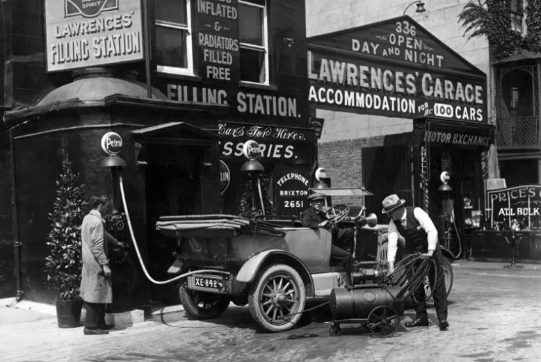 • a stazione di servizio di Lawrence a Clapham, a sud di Londra, nel 1921.