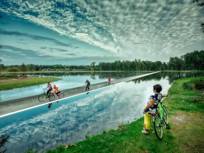 A Bokrijk, tra gli incroci 91 e 243, nell'ampio panorama del lago De Wijers, esiste una pista ciclabile unica al mondo. Dimenticate le normali corsie, semmai anche con panorami mozzafiato, che costeggano fiumi e coste, che passano sopra le città o che permettono di pedalare immersi nella natura, perché in Belgio esiste una pista ciclabile che permette di pedalare sull'acqua.
