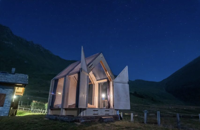 Vivere la natura in alta quota, immersi nel paesaggio delle Alpi, è l'incredibile esperienza che offre "Immerso", la cabina progettata dagli architetti italiani Fabio Vignolo e Francesca Turnaturi per fare glamping tra le montagne. Immerso è un rifugio temporaneo con tetto e pareti trasparenti che permette agli ospiti di dormire sotto il cielo notturno di stelle circondati da un paesaggio alpino mozzafiato. L'innovativa cabina si trova nel villaggio alpino di Usseaux ed è disponibile per soggiorni magici attraverso la piattaforma di Airbnb.