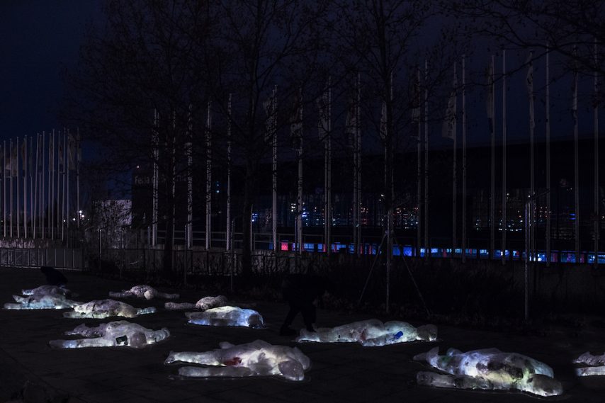 Morire di plastica a Madrid nell'installazione dei Luzinterruptus