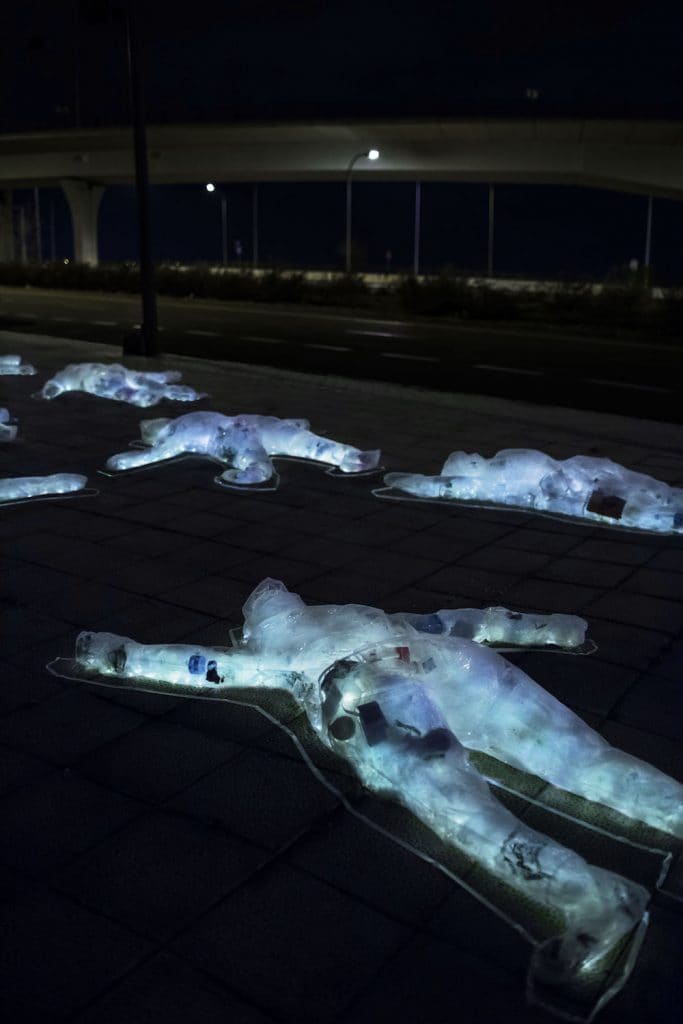 Morire di plastica a Madrid nell'installazione dei Luzinterruptus