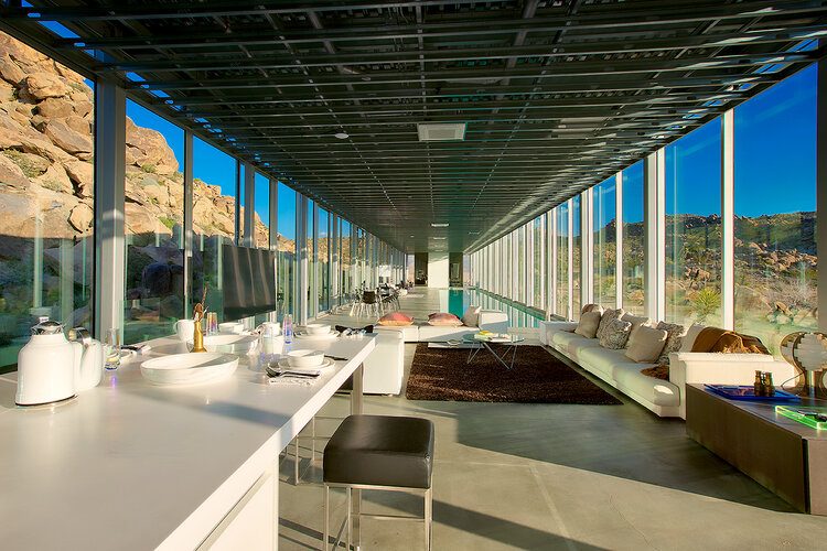 Il produttore cinematografico dietro American Psycho, The Virgin Suicides e Spring Breakers, Chris Hanley, e l'architetto Tomas Ozinski hanno progettato una casa a sbalzo a specchio che sembra un grattacielo di New York in orizzontale ma che è in grado di mimetizzarsi perfettamente nel famoso deserto americano. La Mirror House sorge a 10 minuti dal Joshua Tree National Park. Qui esistono pochissime costruzioni, e di notte il cielo si tinge dei colori più accecanti della notte.