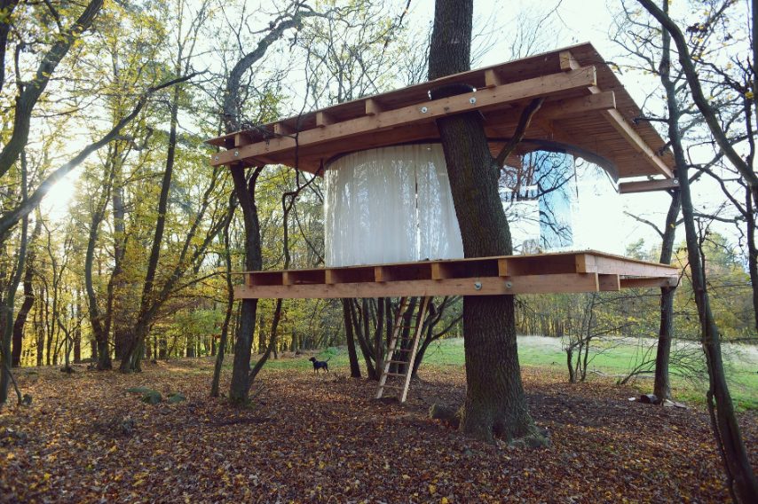 L'architetto ceco Jan Tyrpekl ha progettato una casa sull'albero, situata nella pittoresca campagna vicino a Hrusice, con vista a 360° su un pascolo di pecore. Con una struttura che sembra sospesa nella natura, l'originale Treehouse è un luogo da visitare e vivere. Dall'interno, caratterizzato da un cilindro trasparente compreso tra due piattaforme di legno, sembra di stare immersi nel paesaggio naturale circostante.