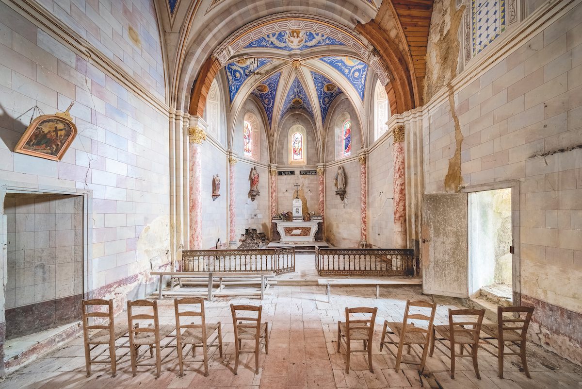 Tra il 2012 e il 2020 Francis Meslet ha fotografato decine di luoghi di culto dimenticati in tutta Europa. Nel nuovo volume di edizioni Jonglez (www.edizionijonglez.com) “Chiese abbandonate, luoghi di culto in rovina” sono raccolti decine di suggestivi scatti, delle “capsule del tempo” che testimoniano un universo parallelo che favorisce il vagare della mente e l’interrogarsi. Un volume che offre immagini rare e commoventi della nostra storia, delle nostre credenze, speranze, delle nostre paure, tutte da sfogliare.