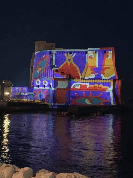 Videoarte proiettata sulle pareti di Castel dell'Ovo a Napoli. Le suggestive immagini sul lungomare nel periodo natalizio accrescono l'atmosfera di colori in città. Le installazioni, con simoboli della tradizione partenopea, sono opera di Franz Cerami con la partecipazione degli studenti dell'Università Suor Orsola Benincasa.