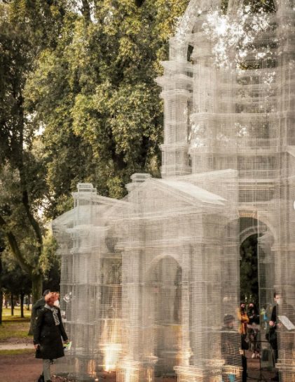 Roma, una scultura monumentale realizzata con rete metallica e altri strumenti industriali. L'installazione si trova a Villa Borghese ed è opera dell'artista Edoardo Tresoldi.