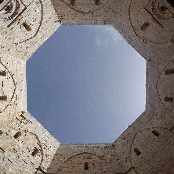 Castel del Monte sorge ad Andria, su un colle roccioso che domina la campagna circostante della Murgia, vicino a Bari, sul mare Adriatico. Costruito dall'imperatore Federico II nel XIII secolo, questo castello è caratterizzato da un forte significato simbolico, testimoniato dalla particolare posizione, dalla precisione matematica e astronomica della sua disposizione e dalla forma perfettamente ottagonale.