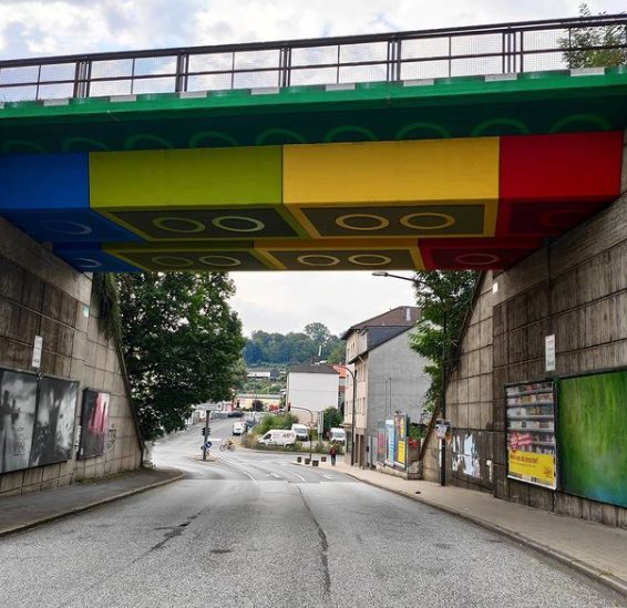Un vecchio ponte ferroviario, diventato poi una porzione di un percorso ciclabile nella città tedesca di Wuppertal, è stato trasformato da Megx, un artista di strada che dopo aver chiesto il permesso al comune e anche a una nota azienda di giocattoli, ha cambiato il volto a questo piccolo ponte anonimo.