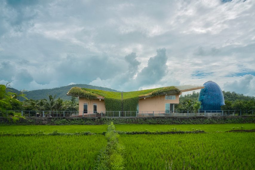 La casa con un tempio privato a forma di uovo e un tetto verde sul mondo