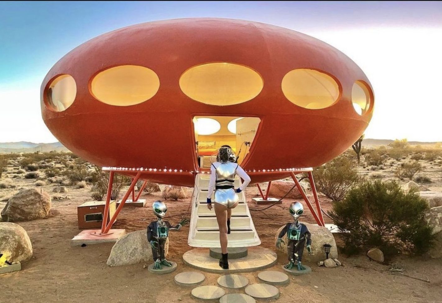 Area 55 è una delle sole 85 Futuro House che esistono nel mondo. Conosciute anche come Case UFO, diciannove si trovano negli Stati Uniti e solo una è disponibile per un'esperienza di glamping unica nel deserto di Joshua Tree in California. Concepita da Matti Suuronen nel 1968, la Futuro House è un pezzo iconico dell'architettura e l'Area 55 Futuro House offre la possibilità di un soggiorno nella storia.