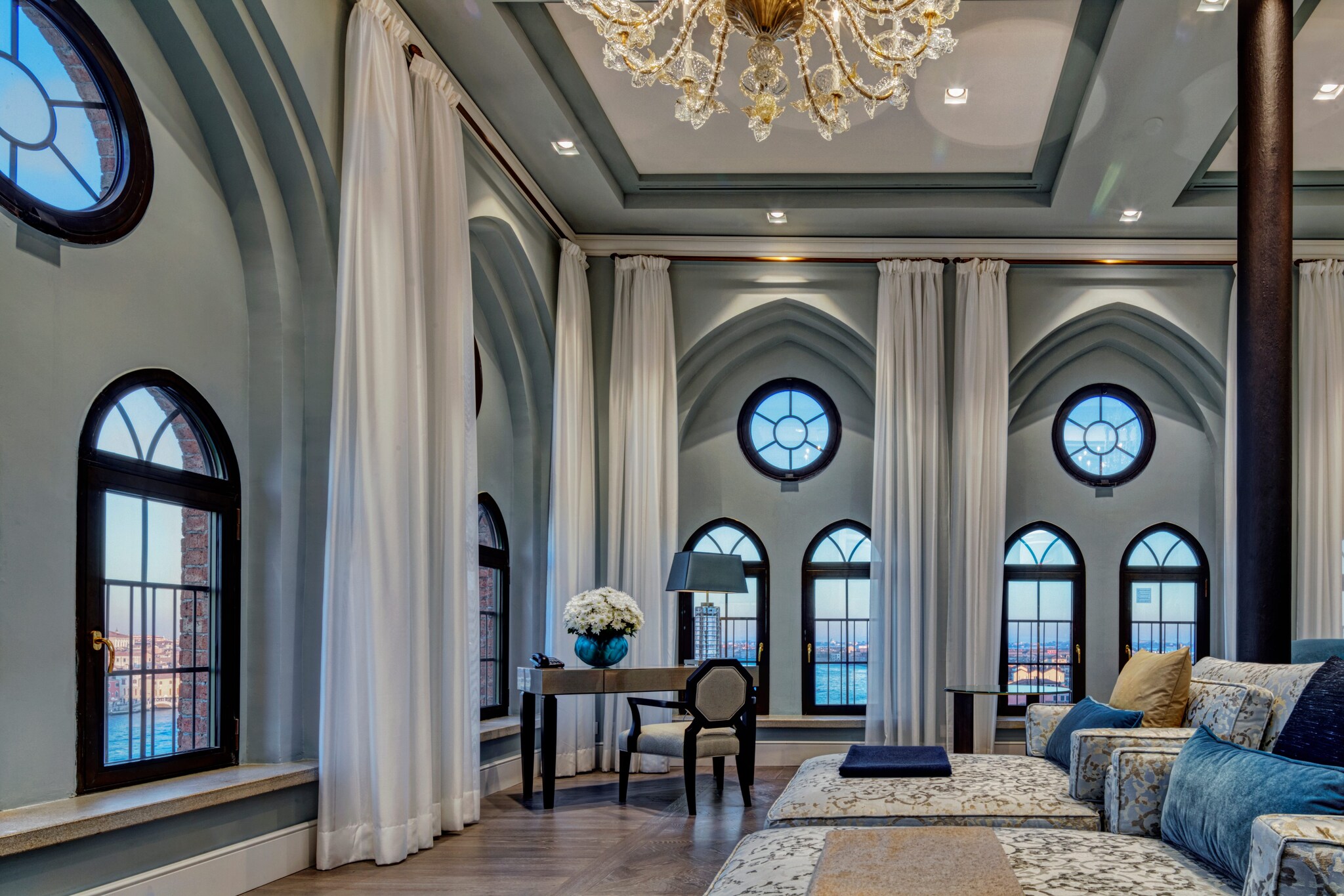 "Sembra di stare in Paradiso ed è meraviglioso.", con queste parole l'interior designer, Biagio Forino, commenta il suo progetto di revamping della Presidential Suite dell'Hilton Venice Molino Stucky. Ed effettivamente soggiornare in una delle stanze dell'iconico e imponente hotel sull'Isola della Giudecca a Venezia è come fare un viaggio d'immersione che, dalle acque della Laguna, conduce fino al cielo. Attraversando in battello la laguna di Venezia è impossibile non restare affascinati e catturati dall'imponenza dell'Hilton Venice Molino Stucky. L'iconico albergo sull'Isola della Giudecca vanta infatti una posizione privilegiata e una storia importante. Ricavato all'interno di un opificio veneziano dall'indiscutibile valore storico, l'Hilton Venice Molino Stucky è uno dei migliori esempi di recupero di un di un'architettura industriale al mondo. E oggi l'antico mulino veneziano è diventato un hotel di design iconico per la città.