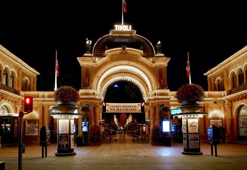 Di notte ai giardini di Tivoli a Copenhagen, il parco divertimenti che sembra uscito da una fiaba