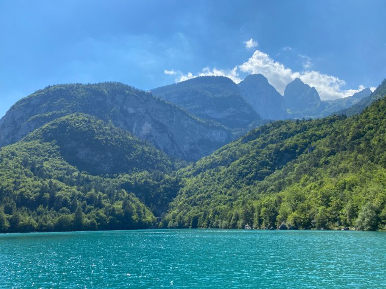 • Il Lago di Molveno visto a bordo di un'imbarcazione elettrica