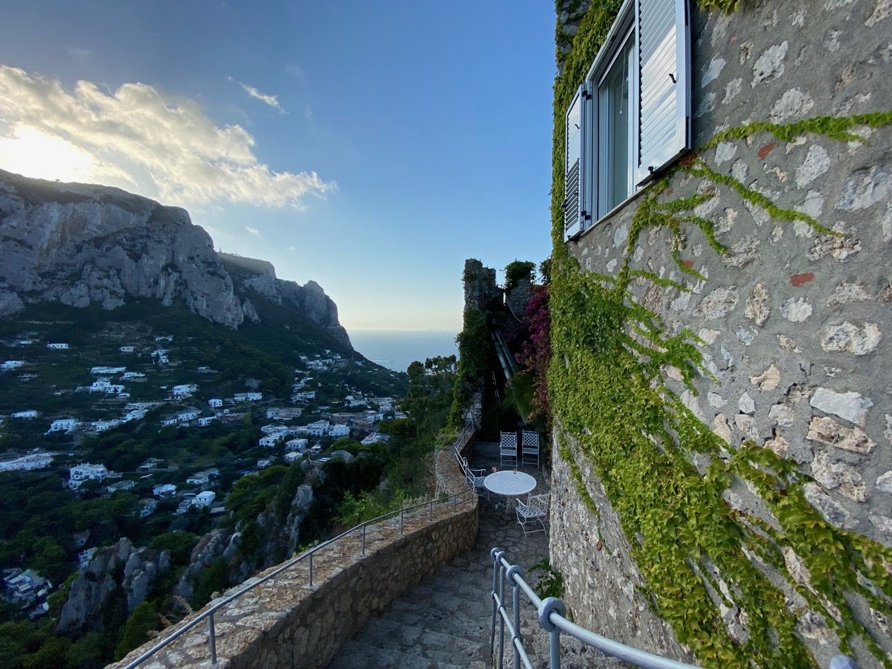 Quando si arriva a Capri già dal mare si resta incantati dalla bellezza del paesino di case bianche arroccate sulla scogliera, i colori della roccia in contrasto con la vegetazione rigogliosa. Sulla cima maestosa che domina il comune non passa inosservata una robusta fortezza da cui sembra possibile toccare il cielo. Si tratta di Villa Castiglione che, sui resti di un tempio greco e di una villa romana, poi castello difensivo dell'isola, è diventato un hotel di lusso e location di eventi esclusivi con vista su uno dei panorami più incredibili del Mediterraneo.
