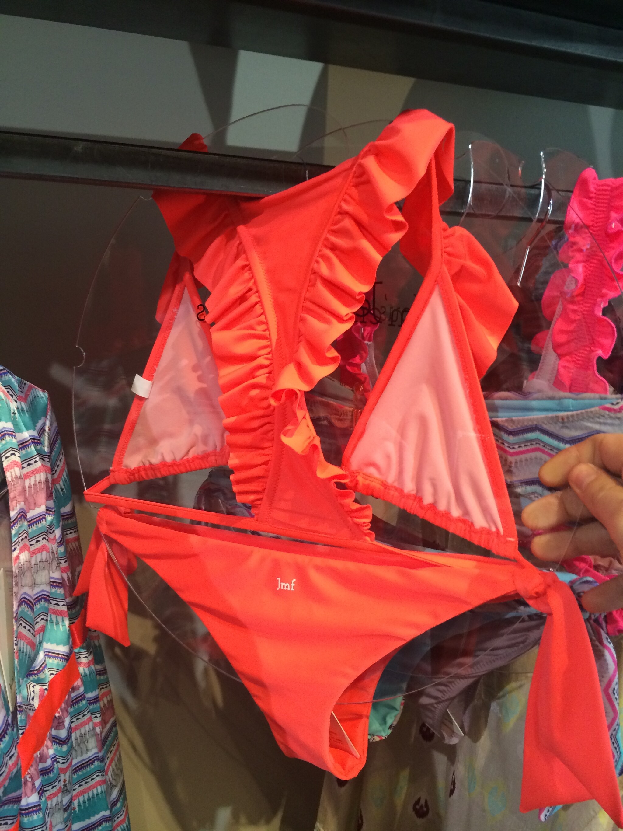Il marchio beachwear Je M'en Fous presenta i capi e gli accessori della nuova collezione per l'estate 2014. tra i pezzi più originali i bikini con volant dai colori accesi, le borse con frasi ironiche e gli abiti per la spiaggia.