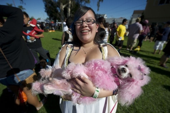 • Padrona orgogliosa del suo cane con il pelo rosa