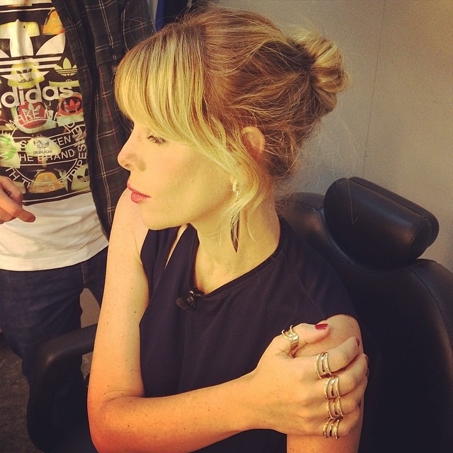 Per la sesta puntata del Grande Fratello Alessia Marcuzzi ha indossato un lungo abito scuro con spaqcco laterale.