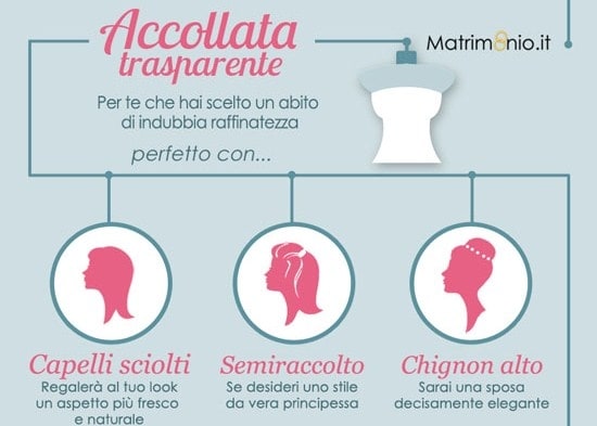 Ecco come scegliere l'acconciatura perfetta da abbinare alla scollatura dell'abito da sposa.