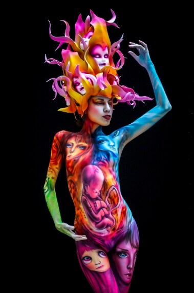 Corpi nudi dipinti con colori accesi, va in scena il Festival del Bodypainting
