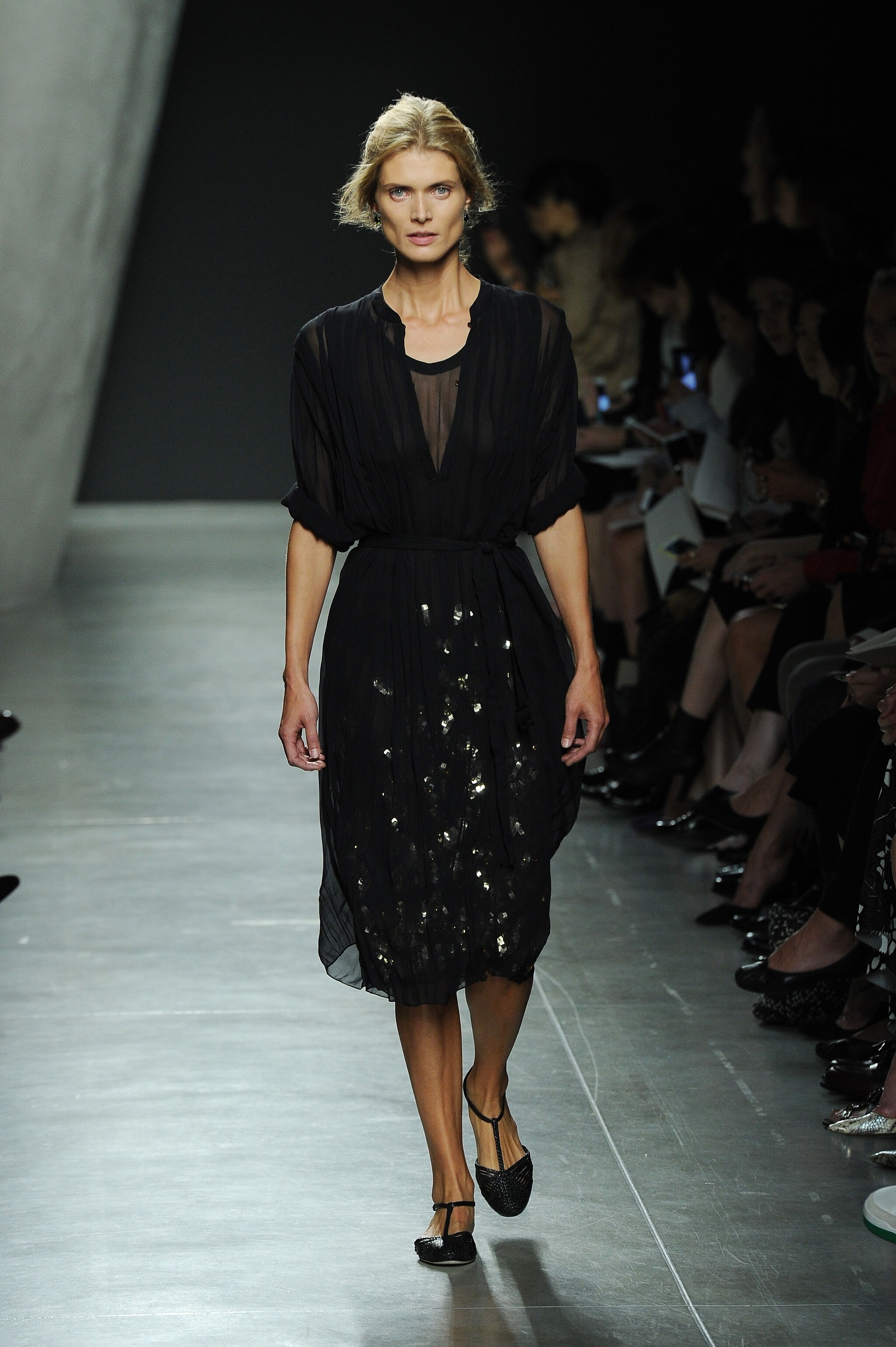 Sfila per prima al quarto giorno della Milano Fashion Week Bottega Veneta, con la sua collezione Primavera/Estate 2015.