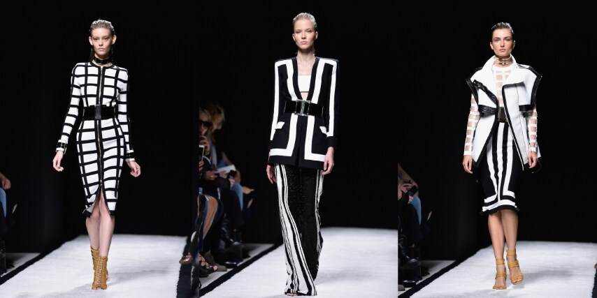 Parigi, al via la Fashion Week che vede sfilare la collezione Primavera/Estate 2015 di Balmain. In passerella il designer della maison, Olivier Rousteing, propone una collezione "geometrica" fatta di decori ed intrecci del tessuto originali e affascinanti, i sensuali abiti con dettagli trasperenti e di eleganti look in black&white.