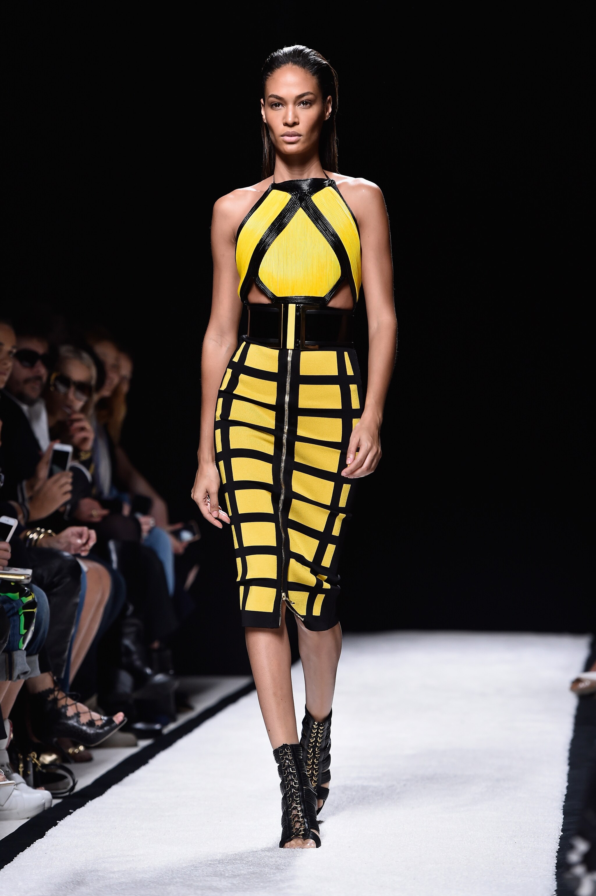 Parigi, al via la Fashion Week che vede sfilare la collezione Primavera/Estate 2015 di Balmain. In passerella il designer della maison, Olivier Rousteing, propone una collezione "geometrica" fatta di decori ed intrecci del tessuto originali e affascinanti, i sensuali abiti con dettagli trasperenti e di eleganti look in black&white.