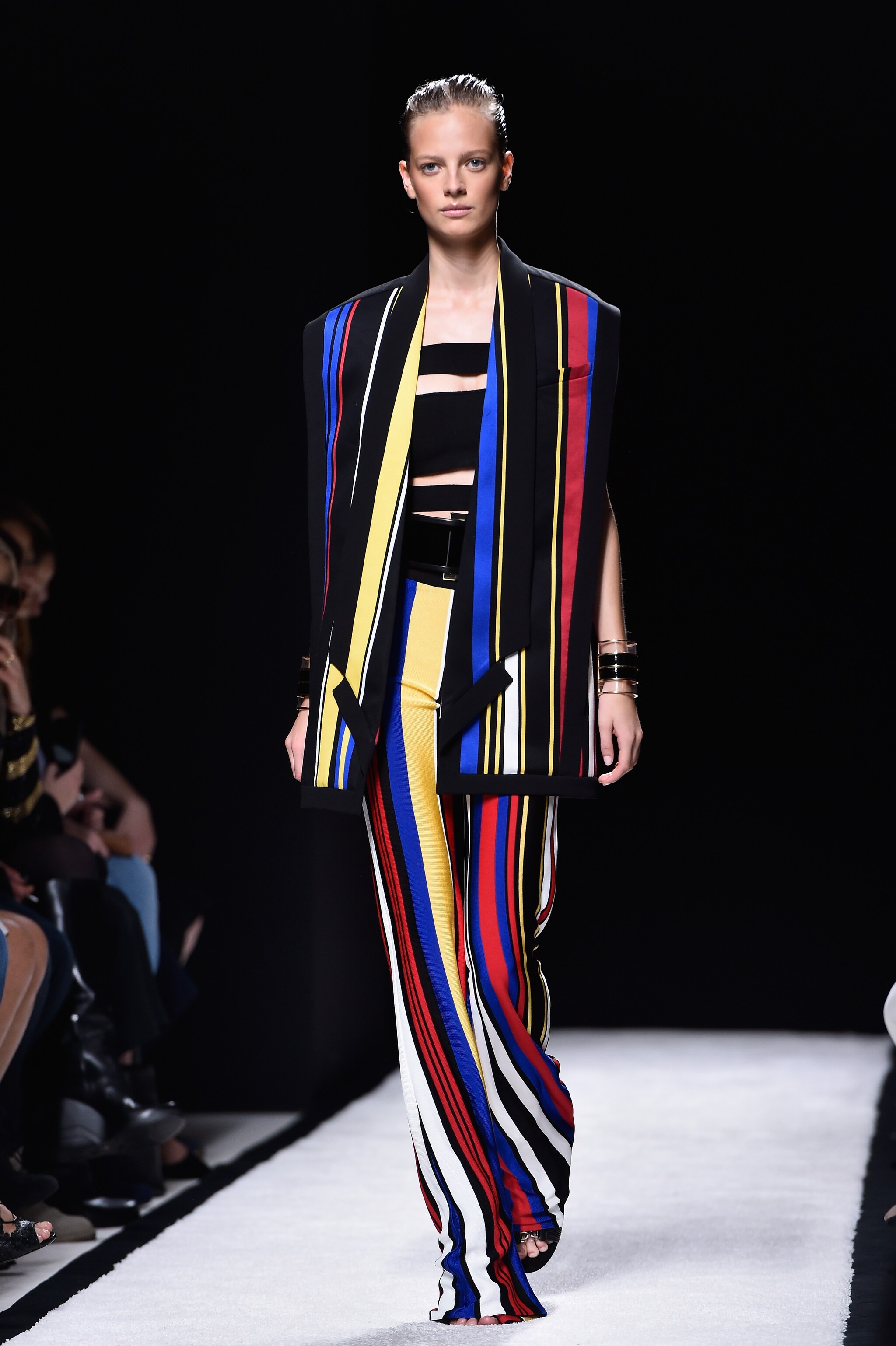 Parigi, al via la Fashion Week che vede sfilare la collezione Primavera/Estate 2015 di Balmain. In passerella il designer della maison, Olivier Rousteing, propone una collezione "geometrica" fatta di decori ed intrecci del tessuto originali e affascinanti, i sensuali abiti con dettagli trasperenti e di eleganti look in black&white.