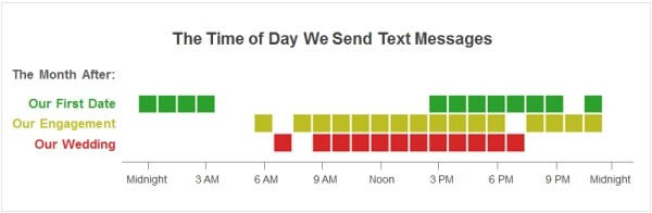Il modo di comunicare in un rapporto di coppia cambia con il passare del tempo: analizzando gli sms inviati notiamo quali sono le parole più utilizzate prima e dopo il matrimonio.