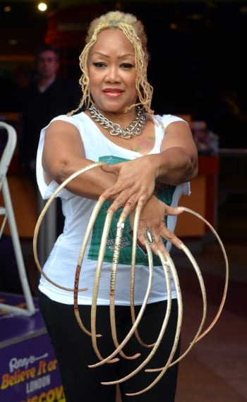 Ayanna ha 54 anni e 59 centimetri di unghie. Non le taglia da dodici anni e perderle sarebbe davvero traumatico per lei. Riesce a fare tutto, tranne lavare i piatti e pagare con le monete.