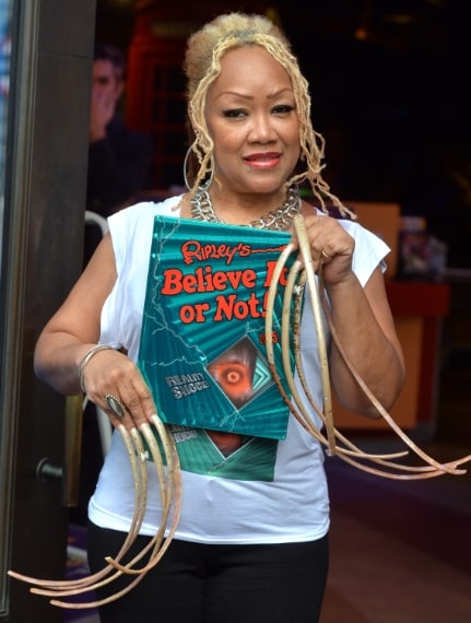 Ayanna ha 54 anni e 59 centimetri di unghie. Non le taglia da dodici anni e perderle sarebbe davvero traumatico per lei. Riesce a fare tutto, tranne lavare i piatti e pagare con le monete.