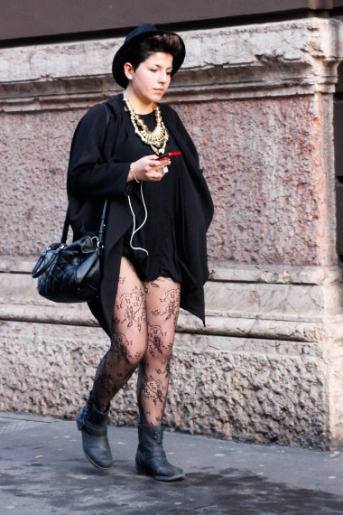 Abiti originali e fuori dalle righe, outfit ricercati, accessori estrosi ed abbinamenti inconsueti, ecco i look del popolo della moda che affolla le sfilate della Milano Fashion Week.