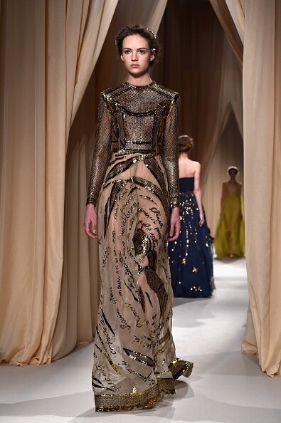 Chiude la Settimana dell'Alta Moda di Parigi la collezione Haute Couture Primavera/Estate 2015 di Valentino. La Maison porta in passerella un vero e proprio inno all'amore, unico sentimento in grado di elevare l'uomo, facendo sfilare abiti decorati con cuori e frasi di poeti e cantautori come Dante e Fabrizio De Andrè
