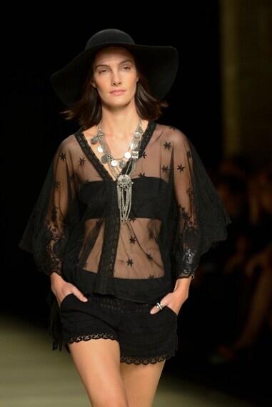 Durante la Fashion Week di Barcellona Mango ha presentato la nuova collezione per la prossima Primavera/Estate 2015. Guest star in passerella la splendida Elisa Sednaoui. Il brand low cost ha presentato una collezione ispirata agli anni '70 e allo stile elegante e giovane del periodo più hippie.Stampe retrò boho-chic, pizzi, ricami, chiffon, camoscio e tessuti vaporosi decorano abiti e gonne lunghe, poncho e kimono monocolore, pezzi forti della nuova collection Spring Summer 2015.