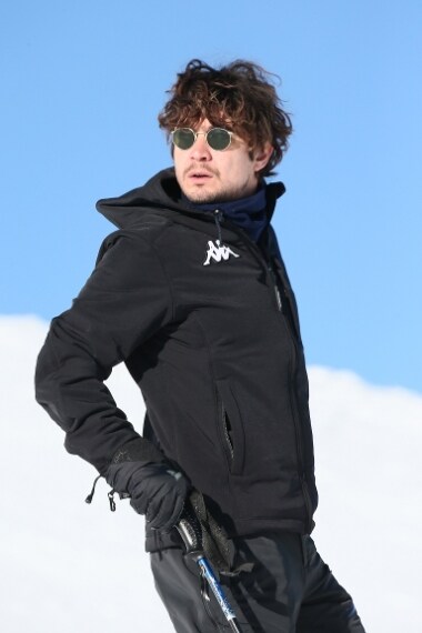 Riccardo Scamarcio è stato immortalato sugli sci nell’incantevole scenario di La Thuile, località sciistica a pochi chilometri da Courmayeur. L’attore ha deciso di indossare la giacca Kappa 4cento abbinata ad un pantalone tecnico della medesima collezione, per un raffinato total black.