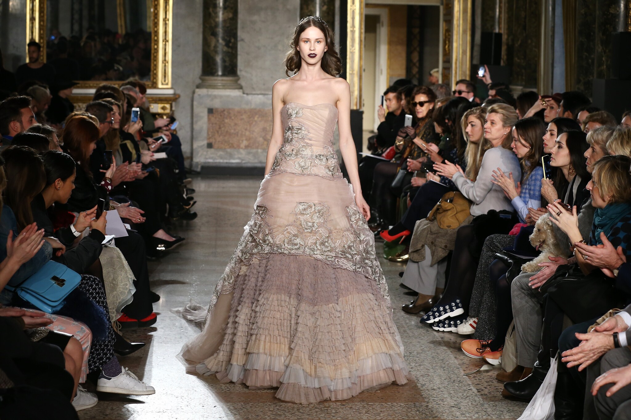 Nel primo giorno della Milano Fashion Week sfila la collezione Autunno/Inverno 2015-16 di Luisa Beccaria. In passerella sfila una donna a metà strada tra una parisienne ricercata e una sontuosa lady che indossa romantici abiti in pizzo.