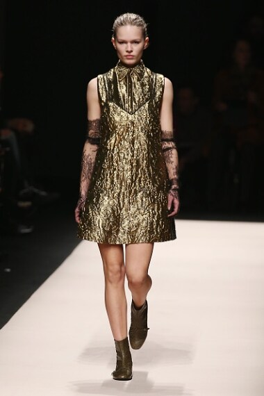 Nel primo giorno di Milano Moda Donna sfila la collezione donna di N°21 firmata da Alessandro Dell'Acqua. Lo stilista porta in passerella modelli in oro jacquard, felpe couture con dettagli in pelliccia e romantici abiti rosa.