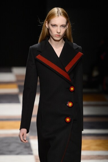 Affascinanti geometrie, disegni "spigolosi", colori intensi, abiti in pelle, morbide mantelle e sensuali abiti lingerie sfilano sulla passerella Autunno/Inverno 2015- 16 di Salvatore Ferragamo.