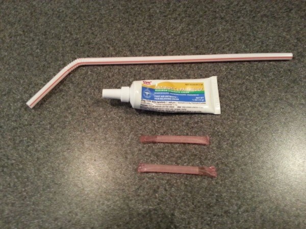 9. Pomata antibiotica. Prendete una cannuccia e tagliatela alla dimensione del portapillole. Riempire la cannuccia con l'unguento e sigillate le estremità.
