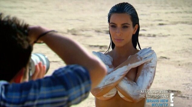 Kim Kardashian ha posato nuda per pubblicizzare l'ultima puntata del reality Keeping Up With the Kardashians. E' stesa nuda su una spiaggia nel deserto e mette in mostra le sue curve mozzafiato. Nonostante abbia il seno coperto da una vernice bianca, lascia davvero poco spazio all'immaginazione.